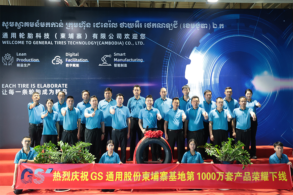 5月6日,通用股份柬埔寨基地迎來歷史性時刻。在半鋼硫化車間內(nèi),千里馬品牌275 55R20 PREVAIL H T輪胎緩緩誕生,標(biāo)志著基地第1000萬條輪