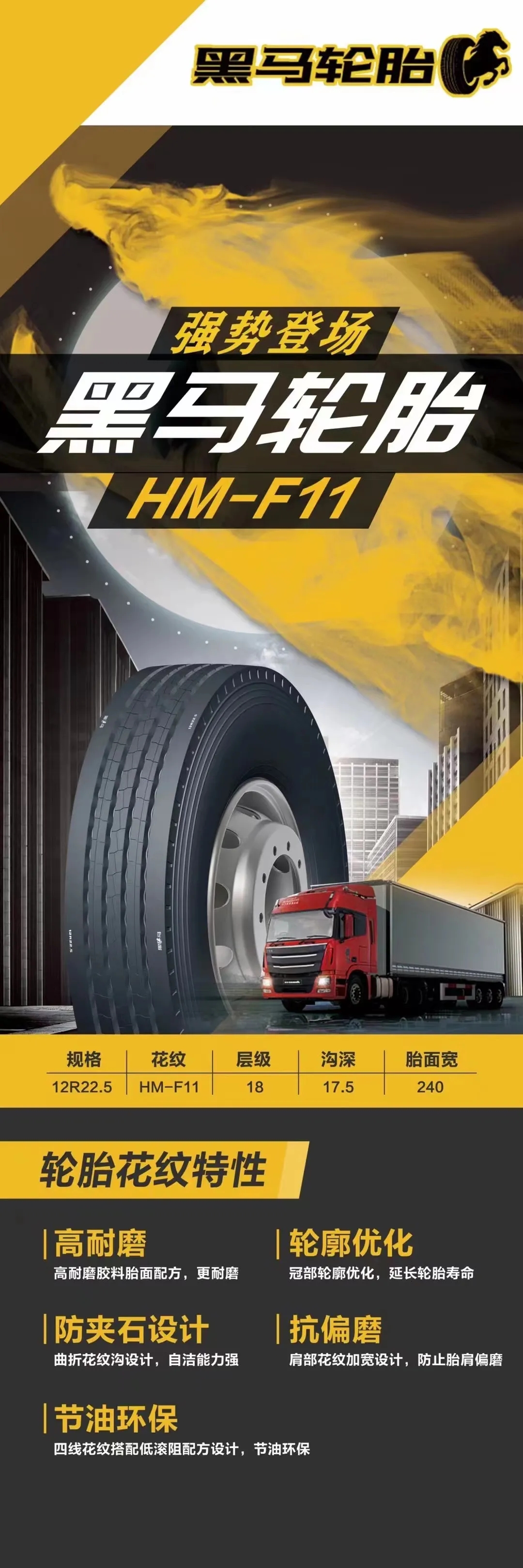 今年推出的黑馬輪胎HM-A33以其高顏值、高耐磨性、節油環保等特點獲得了市場一致好評。